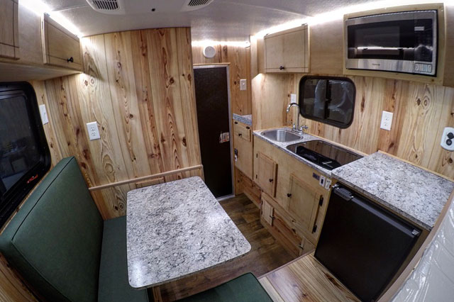 Rodeo cowboys and those who travel a lot, tow trailers, and require a basic, low-maintenance place to sleep love the Cowboy, a classic, non-cabover, wood-framed, aluminum-skinned camper. They range in price from empty shells to completely furnished micro-mansions (excluding a bathroom). There are two-bed versions, and the company could probably construct a three-bed configuration if that’s what you require.